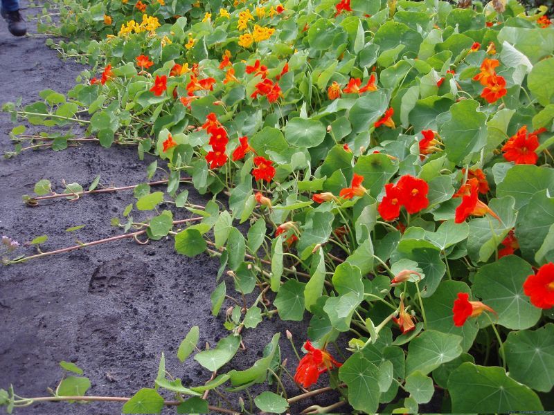 Rankende bzw. kriechende Mischung aus ungefüllten Blüten in reichem Farbenspiel von leuchtend Gelb-Orange bis Rot. Blüten und Blätter sind essbar mit würzigem, senfkresseartigem Geschmack. Geeignet für Pflanzgefäße. Vorkultur ab März, Pflanzung im Mai. Direktsaat im Mai. Blüte ab Juni.