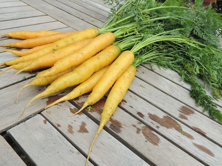 20 - 25 cm lange, große, dunkelgelbe, glattschalige Karotte, relativ zylindrisch wachsend mit abgerundeter Spitze; eine französiche Gourmetsorte. Als Lagerkarotte geeignet.