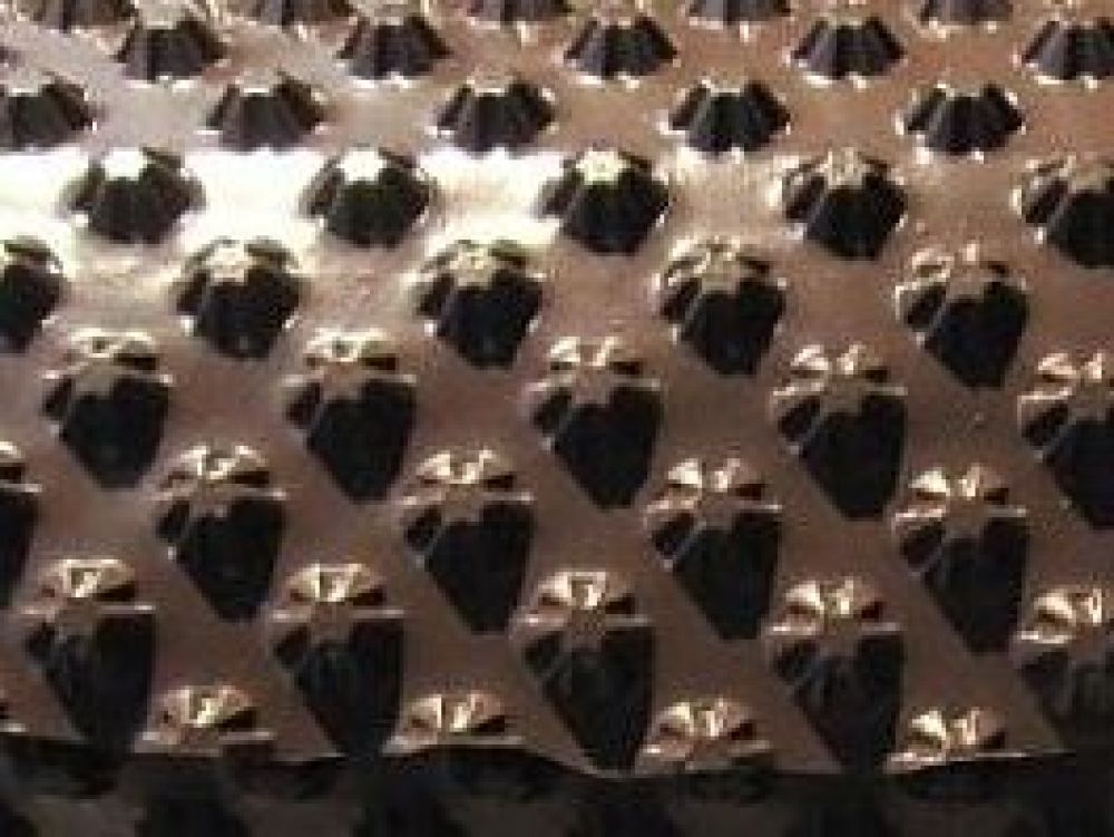 Fertig zugeschnittene Noppenfolie. Die Noppenfolie wird an den Wänden und am Boden des Terrassenbeetes verlegt.