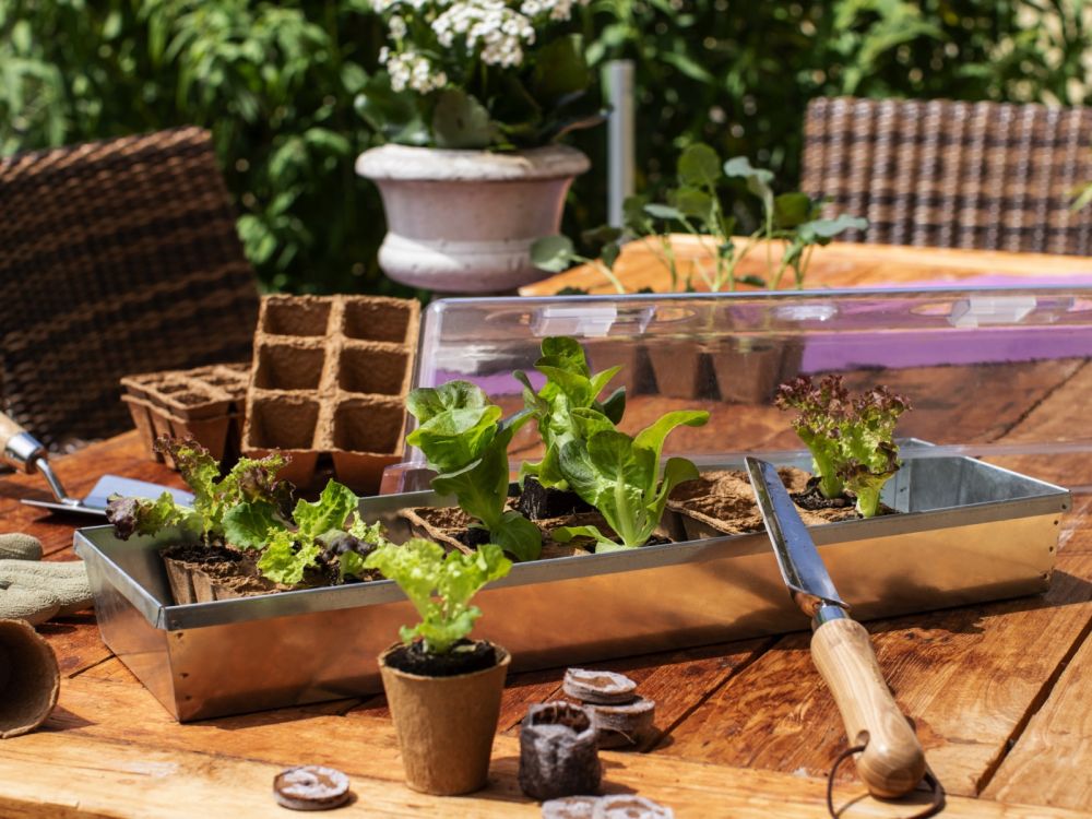 Stelle deine Töpfchen mit Samen einfach dicht nebeneinander in die Schale hinein und platziere diese an einem warmen, hellen Ort. In ein paar Tagen kannst du dich schon über die ersten Keimlinge freuen.