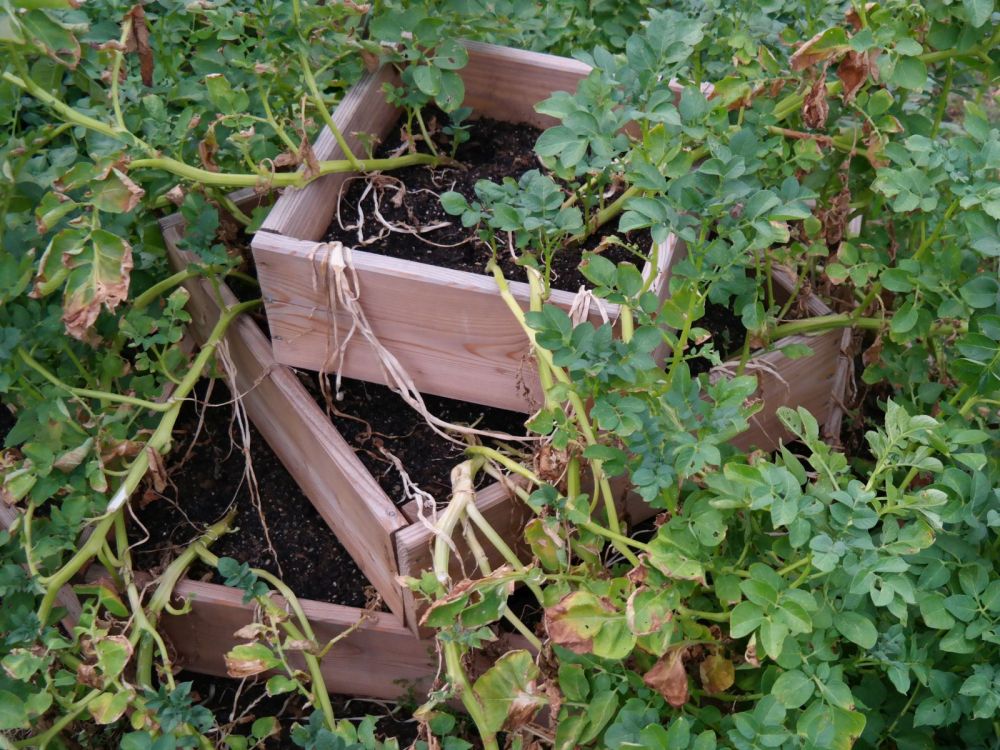 Durch den pyramidalen Aufbau haben die Pflanz-Kartoffeln genug Raum für die Entwicklung und können viele weitere Kartoffeln ansetzen.