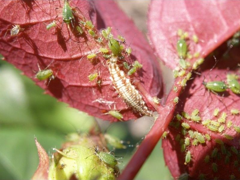 Wirkungsweise: die Florfliegenlarven ergreifen ihre Beutetiere mit ihren Zangen und saugen sie aus. Ihre Lieblingsspeise sind Blattläuse, sie fressen aber auch Spinnmilben, Thripse, Wollläuse und Weiße Fliegen.