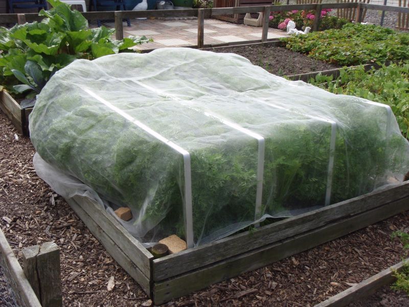 Anwendung: Das Netz einfach auf das Gemüsebeet ausbreiten und beschweren. Bei höheren Pflanzen empfiehlt sich eine Stütze (z. B. gebogene Metallstangen), sodass eine Art Dach über dem Beet entsteht. Das Netz kann genauso gut in Hochbeeten verwendet werden.