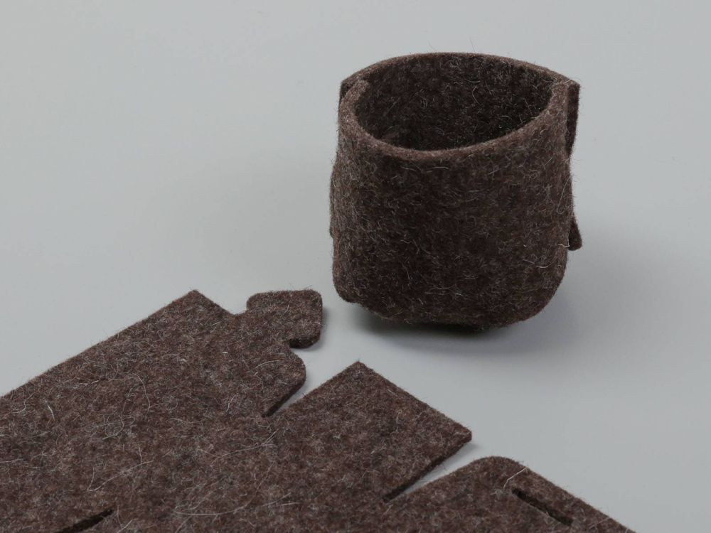 - Die Töpfe bestehen aus Filz, einem Naturprodukt aus Schafwolle. Die gesamte Produktion erfolgt in Deutschland, von der Wolle (durch das Schaf) bis zur Filzerzeugung und dem Zuschnitt der Töpfchen.