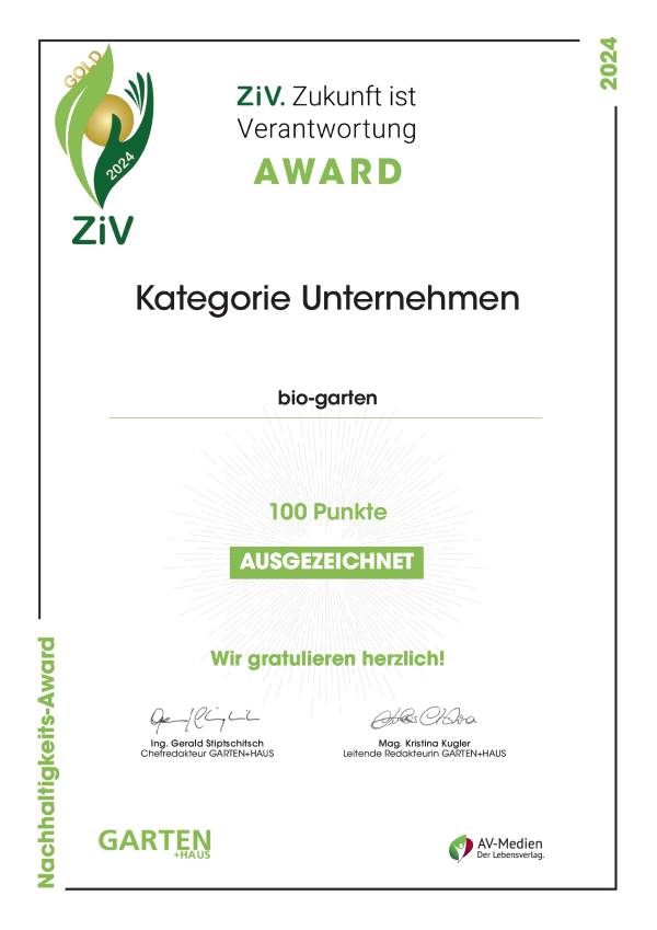 Als biologischer Garten-Online-Shop sind wir der erste und bisher einzige Träger der ZiV Goldmedaille.