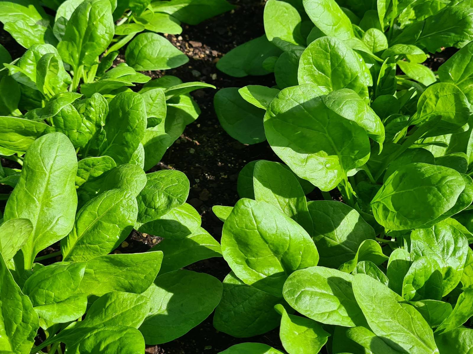 Die folgenden beiden Bilder zeigen den Unterschied von Spinat im Hochbeet mit Frühbeet-Aufsatz (1. Foto) und von Spinat im Bodenbeet ohne Bedeckung (2. Foto). Aussaat beide Ende Februar 2024, Fotos vom 8. April 2024.