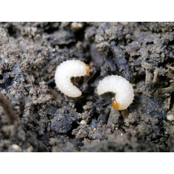 Noch gefährlicher ist jedoch die weiße, dickfleischige Larve, die an den Wurzeln knabbert und die Pflanzen zum Absterben bringen kann.
