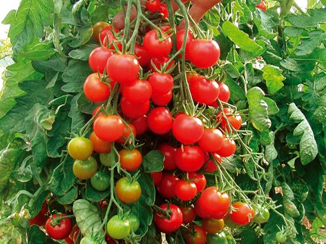 Cocktailtomate. Lange Trauben mit kleinen, sehr aromatischen, roten, ansprechenden und süßen Früchten. Starker Wuchs. Für Gewächshausanbau oder im Freiland mit Regenschutz. Kann auch mehrtriebig gezogen werden. Hohe Stabtomate mit mittlerer Erntereife. Biologisch-dynamische Züchtung.