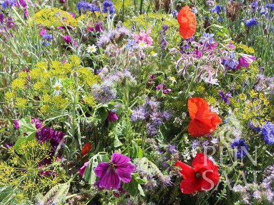 Reichblühende, bunte Mischung aus einjährigen Blumen und Kräutern von Salbei über Phacelia bis Malve, die als Bienenweide besonders für Imker zusammengestellt wurde. Auch die Aussaat in der sonnenexponierten Rabatte ist möglich. Direktsaat März/April, breitwürfig und leicht einarbeiten.
