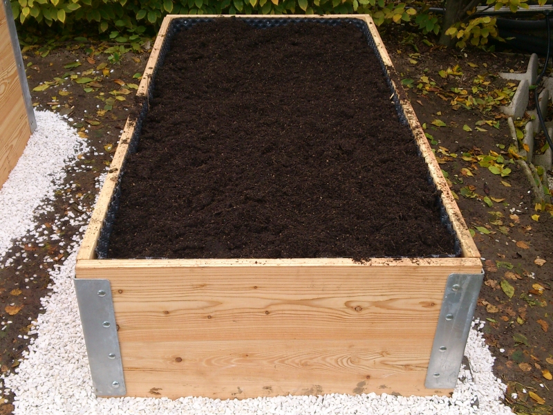 Das Niederbeet besteht aus massivem, gehobeltem Lärchenholz mit Nut und Feder. Enthalten ist auch das notwendige Zubehör: Eckwinkel und Schrauben verzinkt, eine Aufbauanleitung und eine Anleitung zum Schichtaufbau im Hochbeet.