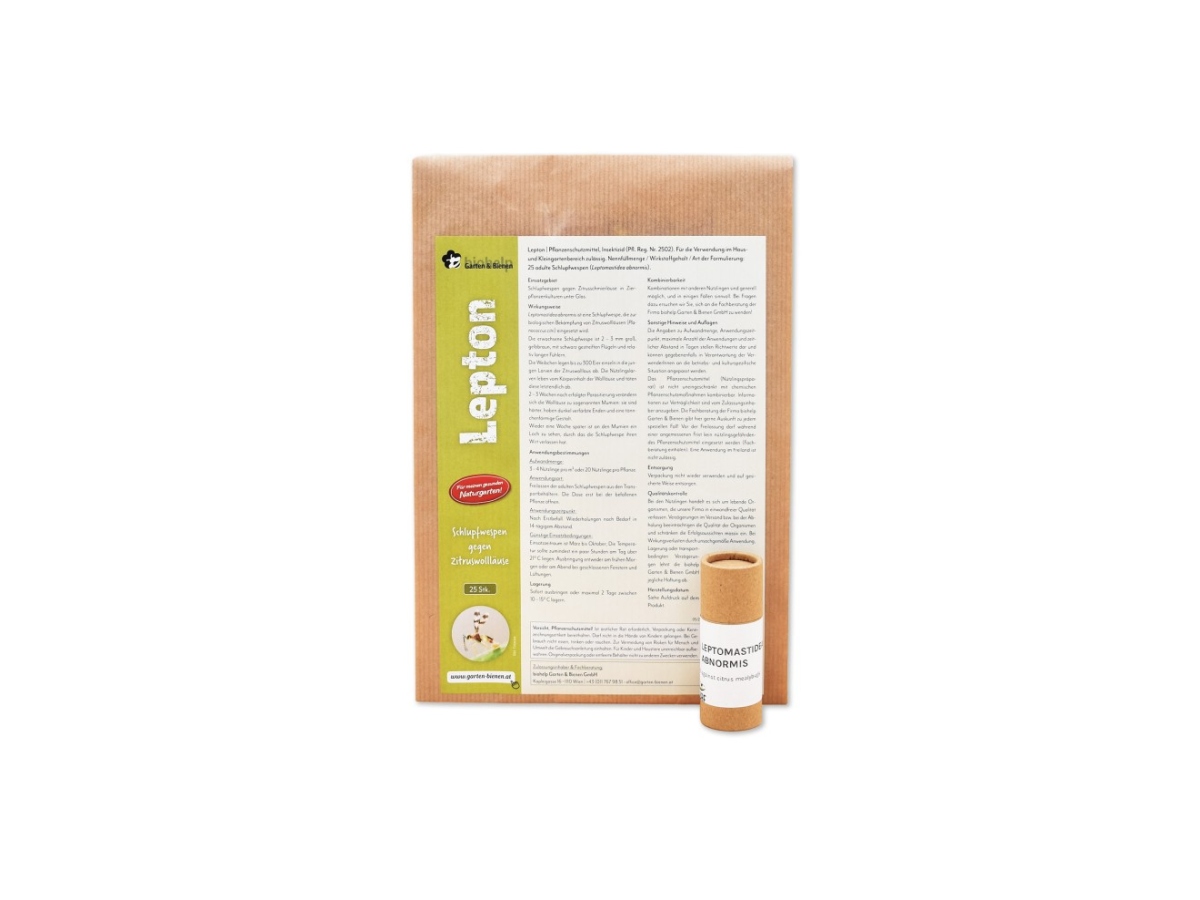 Du bekommst erwachsene Schlupfwespen geliefert. Öffne die Transportdose erst bei der befallenen Pflanze, damit keine Nützlinge am Weg entfliehen. Wiederhole die Behandlung bei Bedarf im Abstand von 14 Tagen.
